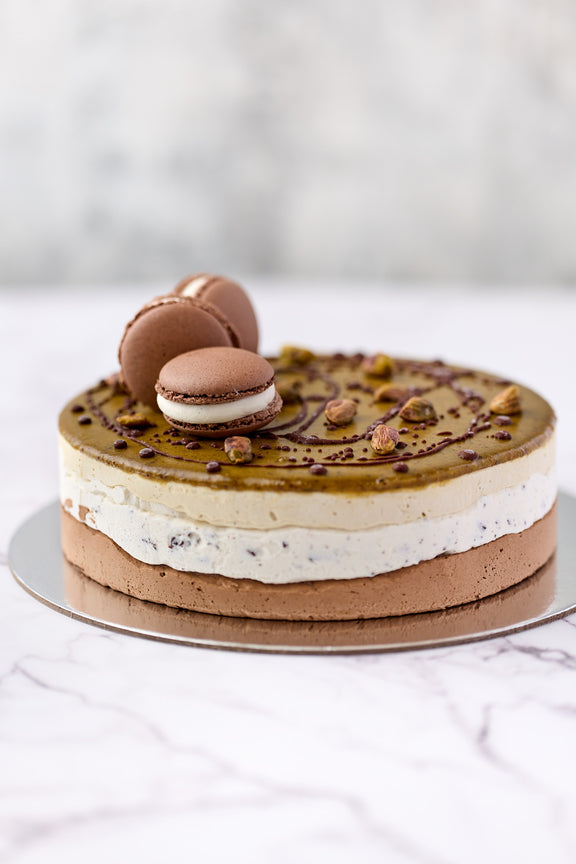 A creamy combination of chocolate straciatella (fiordilatte laced with chocolate) and pistachio semifreddo.