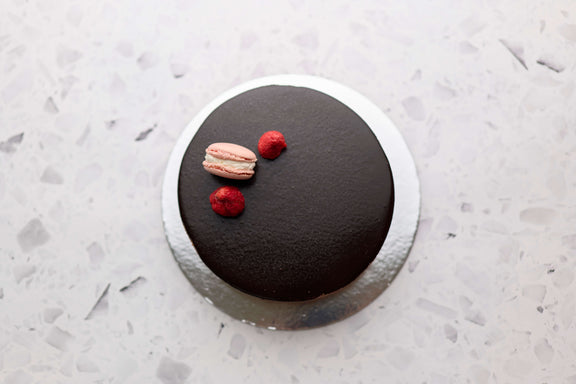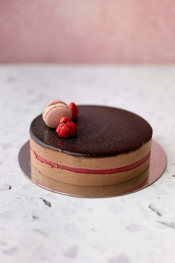 A rich dark chocolate semifreddo balanced with a burst of sweetness from a layer of refreshing strawberry.