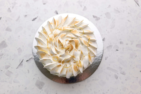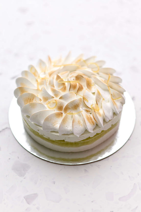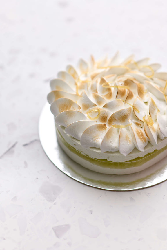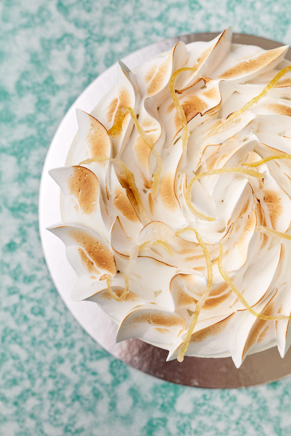 Lemon with a hint of refreshing basil, decorated with flamed meringue and slivers of candied lemon.